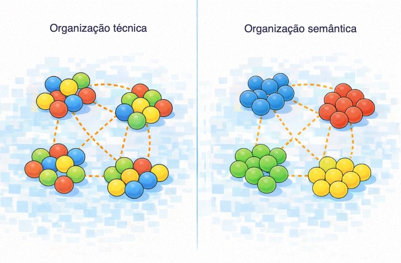 A dificuldade central está em definir bons critérios de modularização. Agrupar por tipo técnico ignora aquilo que realmente impulsiona a mudança: o comportamento do negócio.