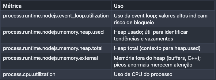 O problema é que, por padrão, aplicações Node não emitem quase nada de útil para realizar um monitoramento de maneira profissional. É como voar sem painel de instrumentos: você sabe que está no ar, mas não sabe para onde vai.